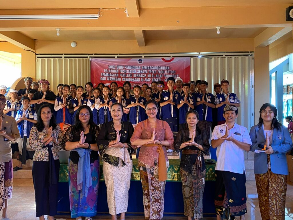 Singaraja, 11 September 2025 – Fakultas Hukum dan Ilmu Sosial (FHIS) Universitas Pendidikan Ganesha (Undiksha) menyelenggarakan Program Pengabdian Masyarakat (P2M) bertemakan “Soko Guru Pendidikan Kewarganegaraan: Pelatihan Fasilitator Sebaya (Peer Facilitator) Pembiasaan Perilaku Berbasis Nilai-Nilai Pancasila dan Wawasan Kebangsaan,” yang dilaksanakan di SMP Negeri 1 Singaraja. Kegiatan ini dilaksanakan sebagai bentuk implementasi Tri Dharma Perguruan Tinggi, terutama pada aspek pengabdian masyarakat, dengan menjalin kemitraan bersama sekolah-sekolah yang ada di Kabupaten Buleleng.